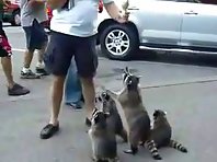 Raccoons beg